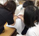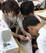 6年生の家庭科のナップザック作りに、ミシンボランティアさんが4名来てくださいま...