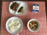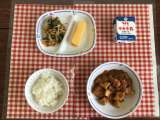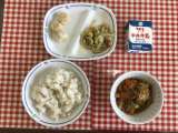 今日の給食は、『ごはん、生揚げのみそ炒め、おかかあえ、厚焼き卵、牛乳』です。 下...