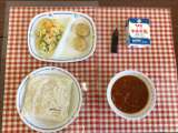 今日の給食は、『ソフトめん、トマトソースかけ、フレンチサラダ、たらナゲット、牛乳...