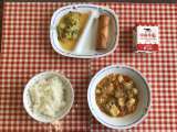 今日の給食は、『ごはん、豆腐の中華煮、バンサンスー、春巻き、牛乳』です。 下の数...