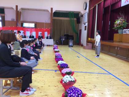 ご来賓の方にもお祝いの言葉をいただき、全校での入学式ができました。