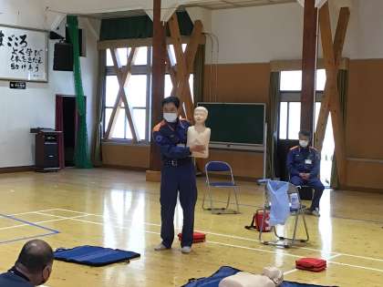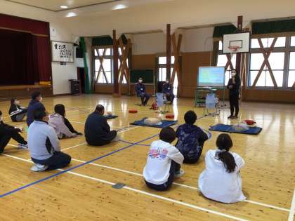 児童の下校後は、職員が心配蘇生について足助消防署の方から研修を受けました。