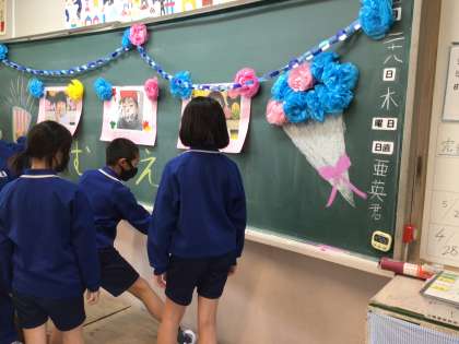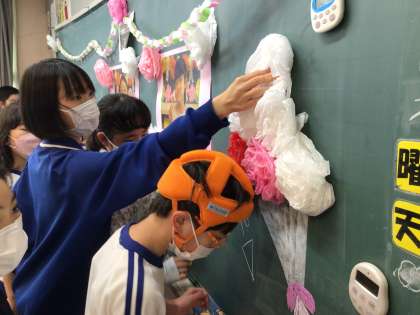 給食の後、4色のチームに分かれて準備をしました。