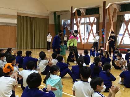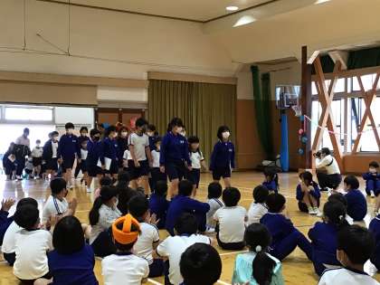 6年生に手を聞いてもらって入場しました。