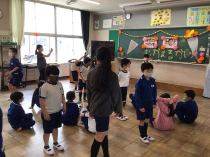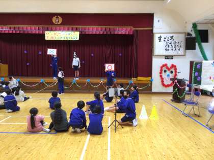 学校についての◯×クイズ、あすまる3の確認をした後は、4色チームごとに分かれてゲームをしました。