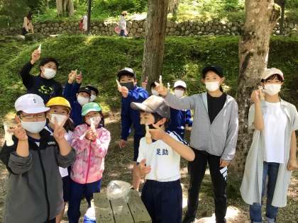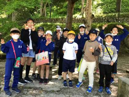 お天気も良く、気持ちよく歩けました。4色チームをさらに2つの班に分けて、ひと班10人くらいを6年生がリードして歩きました。