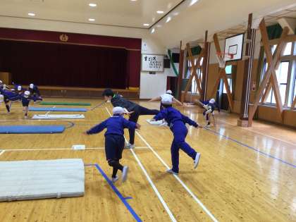 5、6年生体育の授業です。うまくバランスが取れたかな?