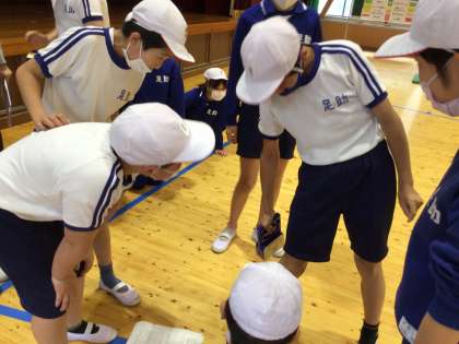 長座体前屈、握力、上体起こし、反復横跳び、立ち幅跳びを講堂で行いました。