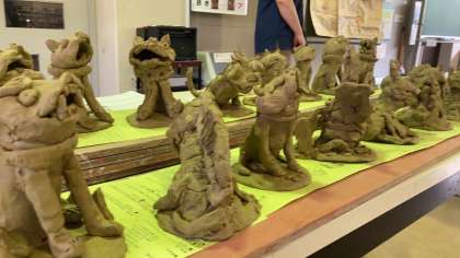 4年生は陶磁器資料館へ行きました。自分で切符を買ってはじめて電車に乗った子もいました。狛犬を作ったそうです。