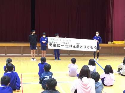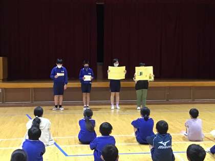 6月6日 月曜朝会の様子2 公開日 2022/06/06 更新日 2022/06/06 校長室から 図書委員会から「OHM BE THE CHANGE」についての連絡がありました。運営委員会からは、今月の生活目標が発表されました。