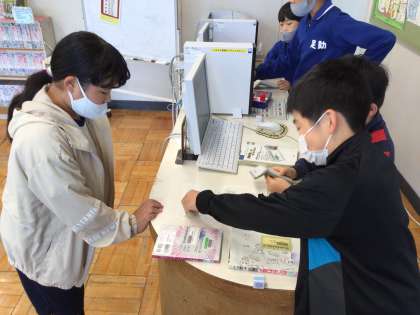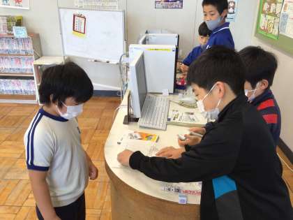図書委員会からのBE THE CHANGE です。バーコードを図書委員に正しい方向で提示して「本を借ります。お願いします」ときちんと言えるとクリアです!
