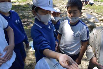 落ちていたビニルごみを持ち帰る子もいて、川の環境への興味関心を高める絶好の機会になりました。