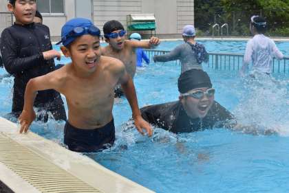 高学年も今日は水慣れから行いました。梅雨に入りましたが、たくさんプールの授業ができるといいです。