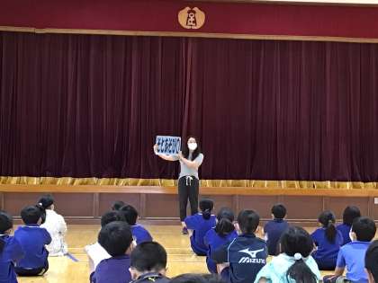 養護教諭から熱中症予防のお話がありました。WBGTが高い時の外遊びについて説明がありました。