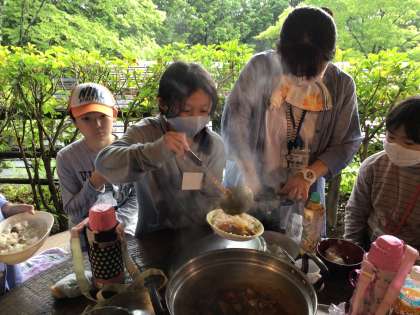 土砂降りになりましたが、順調にカレーができました。ご飯も上手に炊けています。