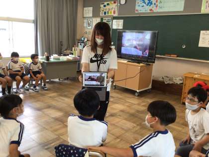 豊田特別支援学校の3年生の児童とオンライン交流会をしました。学習用タブレットを通して自己紹介やダンスなどで交流しました。
