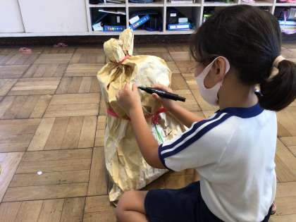 袋に詰めたり縛ったり。カメ?うさぎ?サメ?