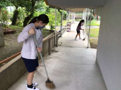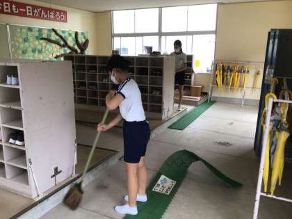 朝、いつも通り教室を回っていると、校内のいろいろな場所で6年生が掃除をしていました。