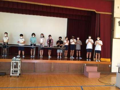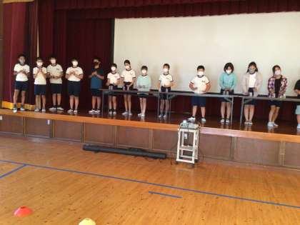 「出でよあすっこヒーロー」では、6年生がカスタネットとカップを使った演奏を披露しました。