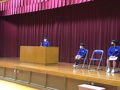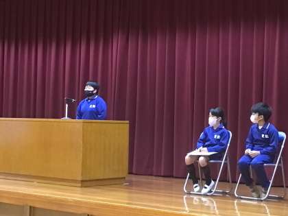 前期の振り返りを、3人の児童が代表で発表しました。