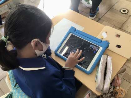 2年生はタブレットを使って足助の町並みを調べていました。3年生は保健の授業で「健康」について考えていました。6年生は静かだから教室にいないのかなと思ったら、算数のテストをしていました。