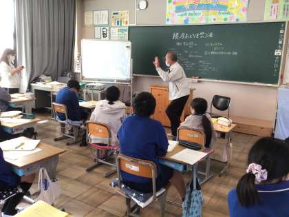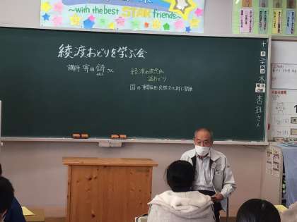 綾戸の夜念仏と盆踊りは「重要無形民俗文化財」となっています。このような貴重なものが学区にあるにもかかわらず、コロナ以降活動が遠のいていましたが、やっと6年生が調べ出してくれました。綾戸踊りに詳しい講師の方をお招きし、改めて勉強しました。