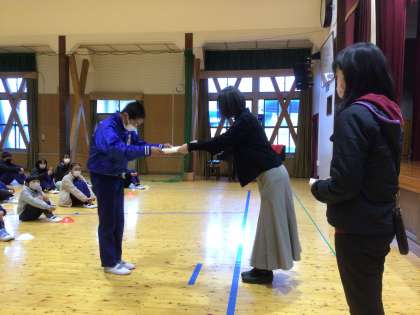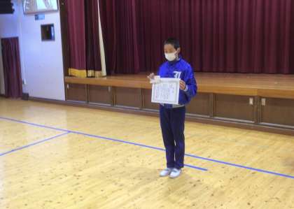 夏休みに書いた、税の習字作品が銅賞に入ったので、表彰しました。
