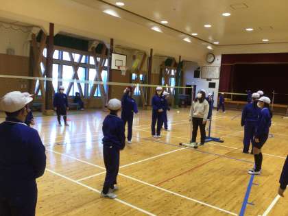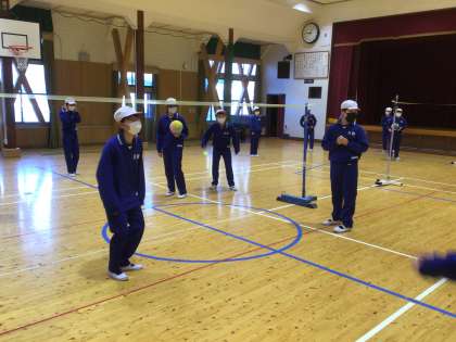 5、6年生の体育は、バレーボールでした。。ローテーションを確認して試合をしていました。
