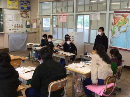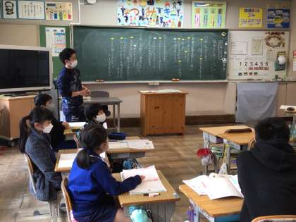 5年生は道徳の授業です。自分の考えを発表し合っていました。