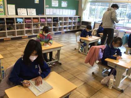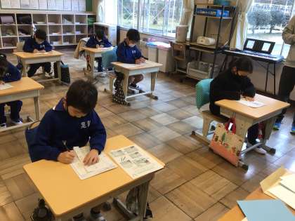 2年生から苗字だけ漢字です。画数の多い漢字は大変ですね。