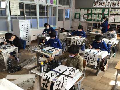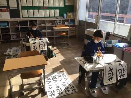 「花さく里」の花が大きくなりすぎると紙が足りなくなります。書く文字の大きさに気を付けて書いていました。