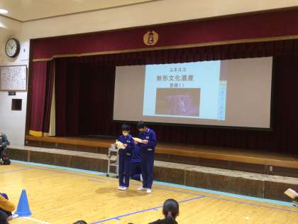 6年生主催で綾戸地区の方をお呼びして綾戸踊りを教えていただきました。