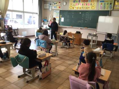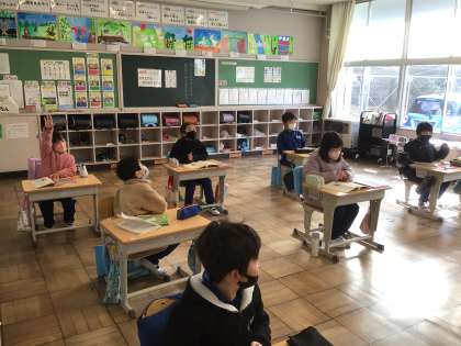 2年生は教頭先生と国語の勉強です。「いろはにほへと」を覚えていました。