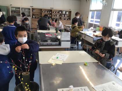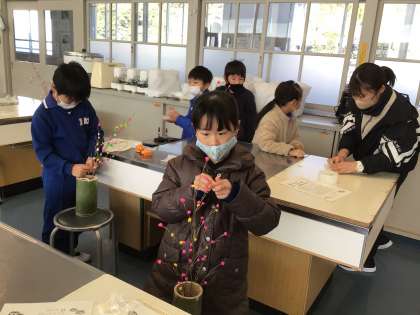 1、2年生が餅花づくりを教えていただきました。