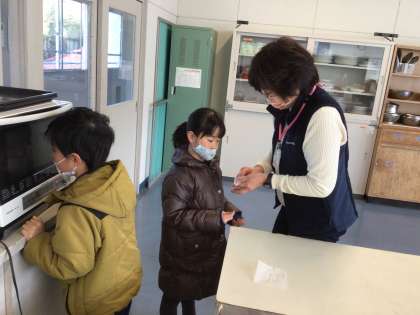 電子レンジで柔らかくした餅を「熱い〜、ぷにぷに」と言って楽しんでいました。