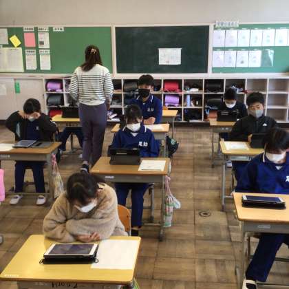 6年生 学力学習状況調査 質問紙調査 公開日 2023/04/18 更新日 2023/04/18 各学年から 4月11日(火)、6年生が学力学習状況調査の質問紙調査に取り組みました。 今年からはタブレットでの実施です。真剣な表情でタブレットに向き合っていました。