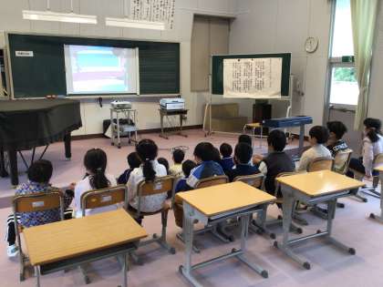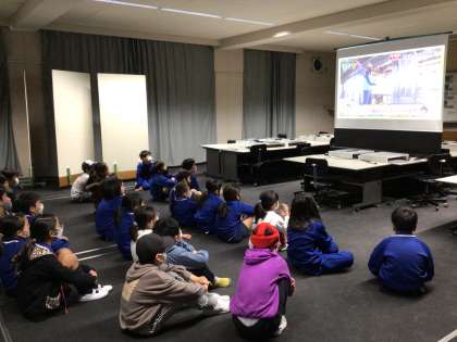 学級懇談会の時間、子どもたちは、低学年、高学年に分かれてDVD等を見ていました。