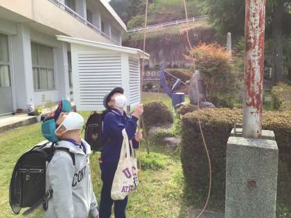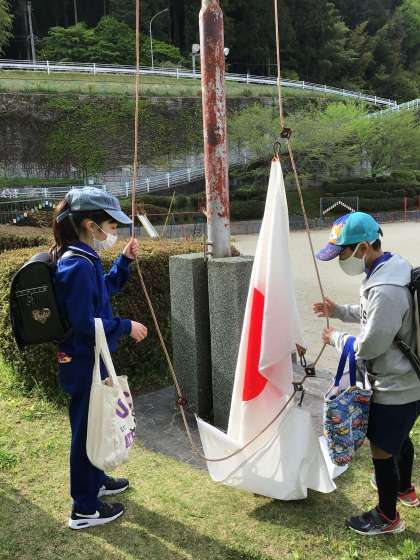 4月18日(火)、朝、旗を揚げるのは、体育委員さんの仕事です。今日もしっかり上がっています。