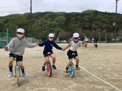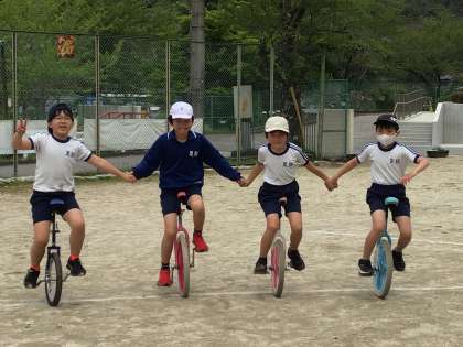 中学年 運動会に向けて 公開日 2023/04/19 更新日 2023/04/19 各学年から 4月19日(水)、中学年の一輪車練習も進んでいます。二人組、三人、四人と数を増やしています。笑顔もいいですね。