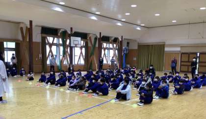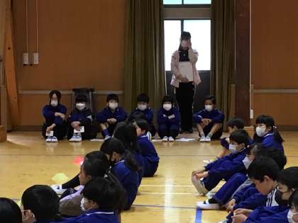 今回はあいさつのお話をしました。あいさつは、出会った人をいい気持ちにさせる、大切なコミュニケーションですが、明るい声と笑顔で自分の気持ちを明るくすることができることを話しました。