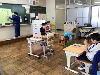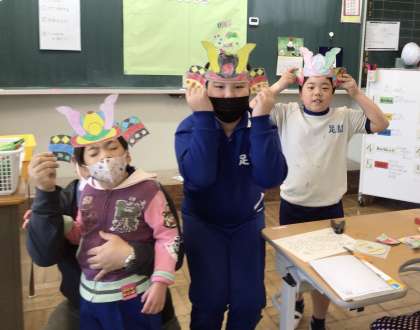 わくわく 5月飾り 公開日 2023/04/27 更新日 2023/04/27 各学年から 4月27日(木)、わくわく学級で取り組んでいる5月の飾りの完成が近づいています。それぞれが色塗りしたカブトを頭にのせて見せてくれました。似合っています。