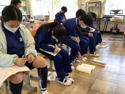 6年生 朗読発表会 公開日 2023/04/27 更新日 2023/04/27 各学年から 4月27日(木)、6年生は国語の学習のまとめとして、朗読発表会を行っていました。 グループ毎に発表し、終わると、聞き手が感想をメモに書いて渡します。自分の振り返りと友達の考えが違うところが面白いですね。