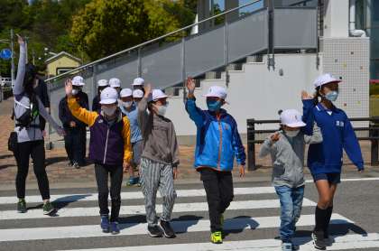 続いて、道路の安全な歩き方を体験しました。