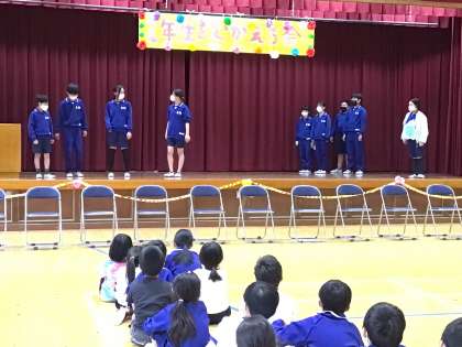 ゲームが終わると、6年生のあすまる劇です。足助小学校のルールやあすまる3を楽しく伝えました。