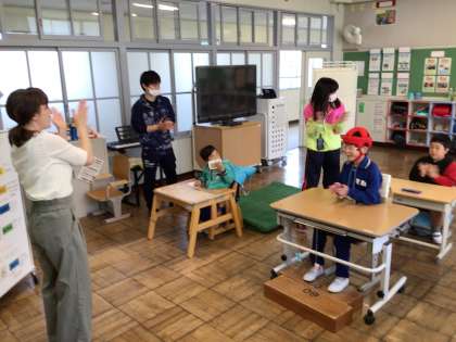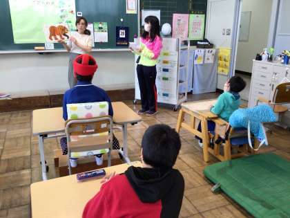 わくわく ALTの先生と 公開日 2023/04/28 更新日 2023/04/28 各学年から 4月28日(金)、わくわくはALTの先生に英語の絵本を読んでもらいました。カラフルな色の動物がたくさん出てきました。シャノン先生の動物の鳴き声がとても上手でびっくりしました。