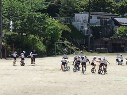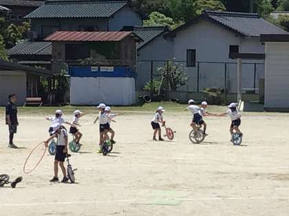 3・4年生 一輪車練習 フラフープ 公開日 2023/05/01 更新日 2023/05/01 各学年から 5月1日(月)、一輪車の練習も進んでいます。 後半は、フラフープで回る練習です。みんなで合わせる「せーの」の声が響いています。