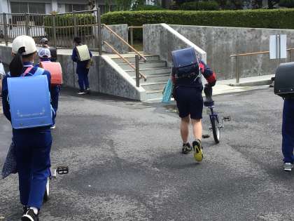 今日の朝は、一輪車と一緒に登校して来る子がたくさんいました。運動会の練習も佳境に入っていきます。