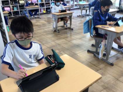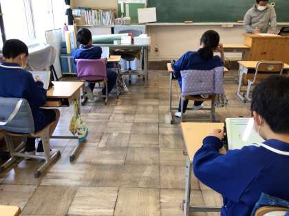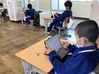 5月10日(水)、QUBENAで算数の既習したことを復習します。自分のペースで進めることができます。