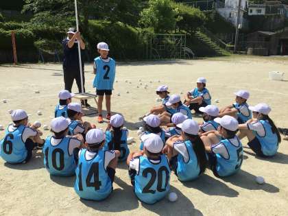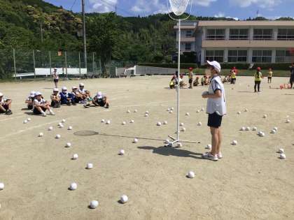 玉入れ練習の後半は、各組でどうしたらたくさん入れることができるかを考えて、リーダー中心に練習しました。