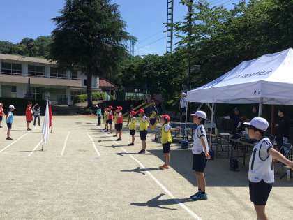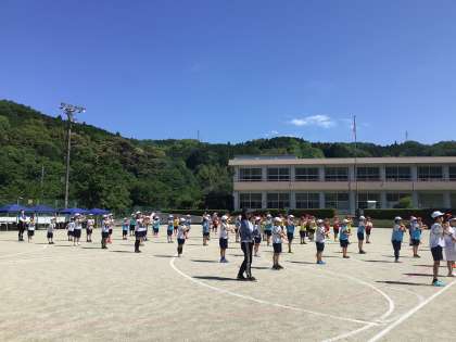 準備運動はラジオ体操です。